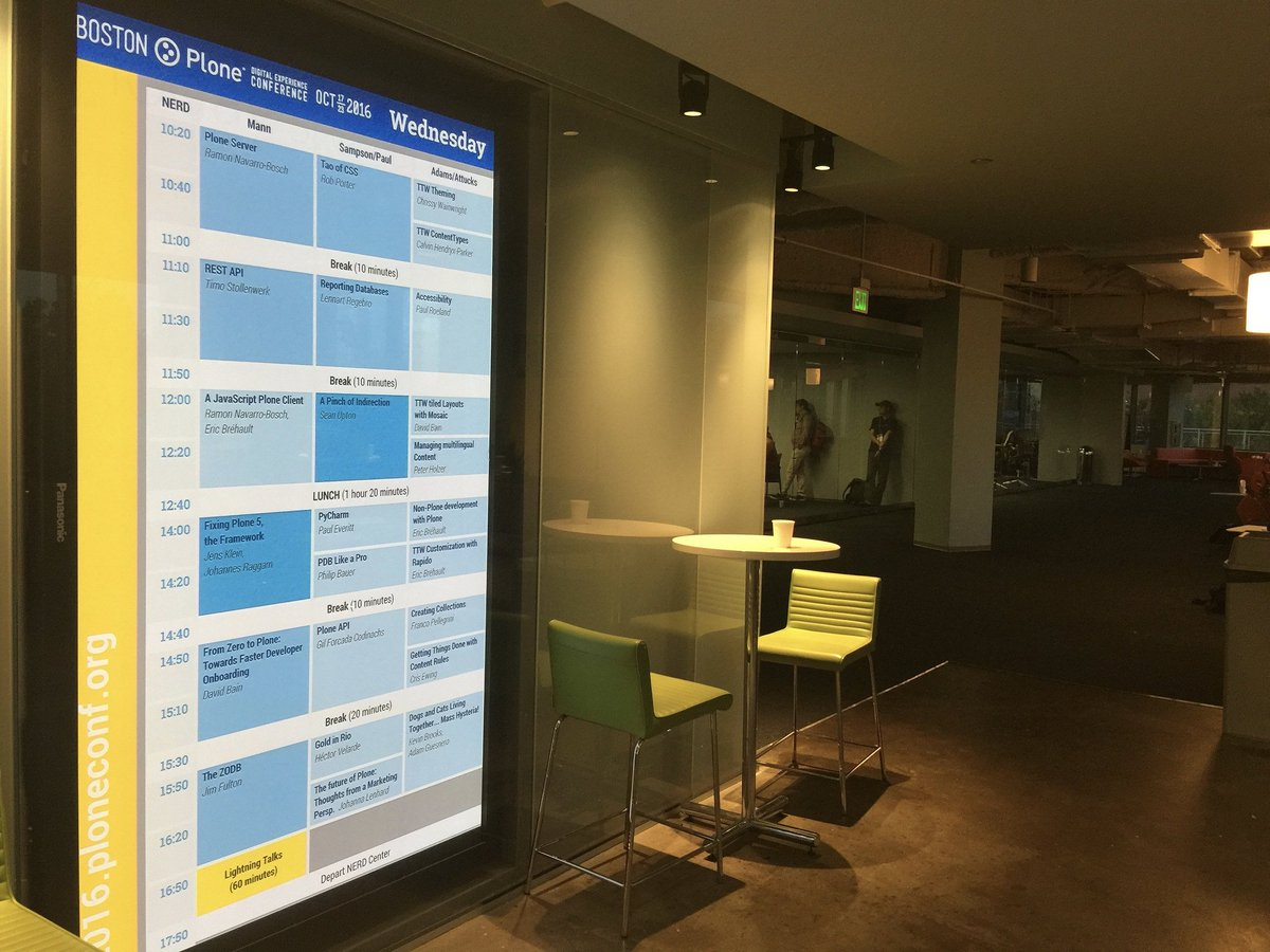 The Microsoft NERD Center offers a huge 102" Display to show an up-to-date schedule of all Tracks & Talks of the day.
